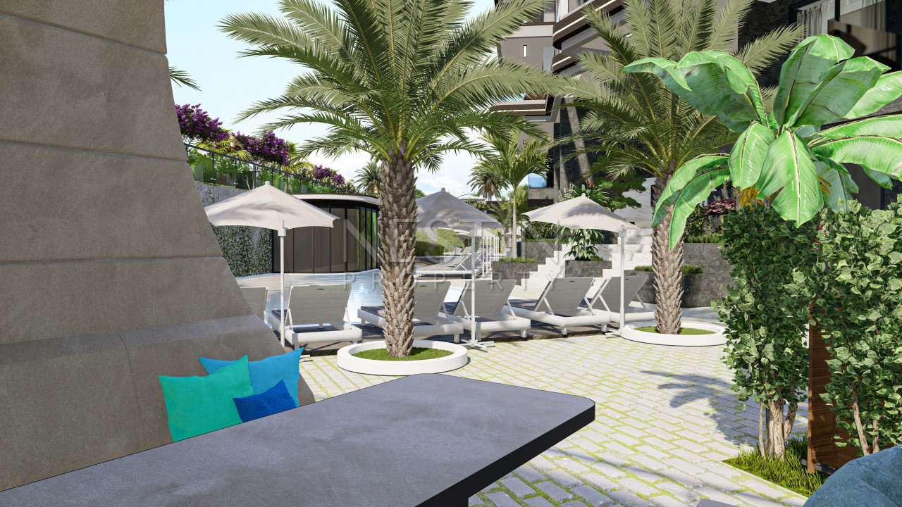 Жилой комплекс включает в себя квартиры разной планировки 1+1, 2+1 дуплекс. На территории комплекса будет присутствовать открытый бассейн, детский бассейн, бар у бассейна, закрытый подогреваемый бассейн, сауна, парная комната, фитнес, открытая детская площадка, беседки для отдыха, беседки для барбекю, парковка,трансфер до моря